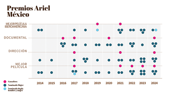 Los premios Ariel son los que tienen más mujeres nominadas. Seguido de los premios Condor.