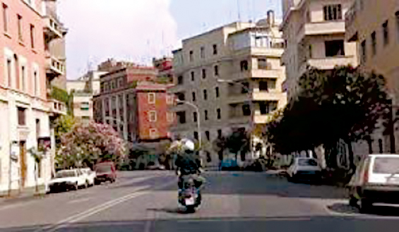 En este sentido, vamos a destacar tres secuencias. La primera es una escena que tiene que ver con la expresión de un gusto personal del director que, al mismo tiempo, permite la descripción de un rasgo de la ciudad. Moretti nos conduce con su moto hasta un baile en la calle, dando paso a través de su voz a su deseo de bailar bien. Describe algo típico de Roma, los bailes populares, pero, al mismo tiempo que hace una descripción documental, como el vecino que da un paseo, utiliza una planificación cuyo objetivo es mostrar los sentimientos que este ambiente cotidiano provoca en el director. Debemos advertir que la música, que no es otra que Visa para un sueño de Juan Luis Guerra, la cual va a igualar tanto los cambios de montaje como su llegada en moto desde la ciudad, donde ya había empezado. Es interesante como el montaje de esta secuencia muestra el deseo de Moretti, el cual pasa directamente en un corte de estar observando el baile y la orquesta, a formar parte de los músicos y cantar con ellos, como si todo ocurriera en un espacio físico (la mirada del nativo) pero construido con los ladrillos de lo que le apetecería al protagonista, de lo que pasa en su mente, volviéndose a romper esa frágil barrera de la ciudad cotidiana y la ciudad del deseo, lo que recuerda a Calvino cuando en Las ciudades Invisibles agrupa a diferentes urbes inventadas bajo el nombre de “Las ciudades y el deseo”, dando importancia a la mirada sobre la ciudad, al arte o al espectáculo que contiene.