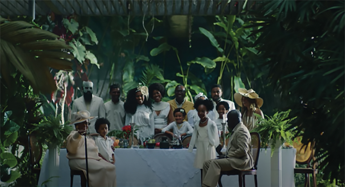 Todas as personagens vestem trajes dos ‘senhores’, tornando esta cena inusitada, já que se trata de um povo que foi explorado por esses mesmos ‘senhores’. Encena-se uma situação de falsa riqueza, com a presença de uma mesa farta decorada com toalha de renda, e o uso de acessórios geralmente associados a uma classe social superior. O ambiente é ‘povoado’ por plantas luxuriantes, vistosas, bem tratadas.