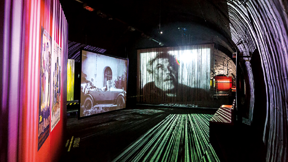 Figure 21 – The old tunnels host an extraordinary environment, tribute projections to Trento memory