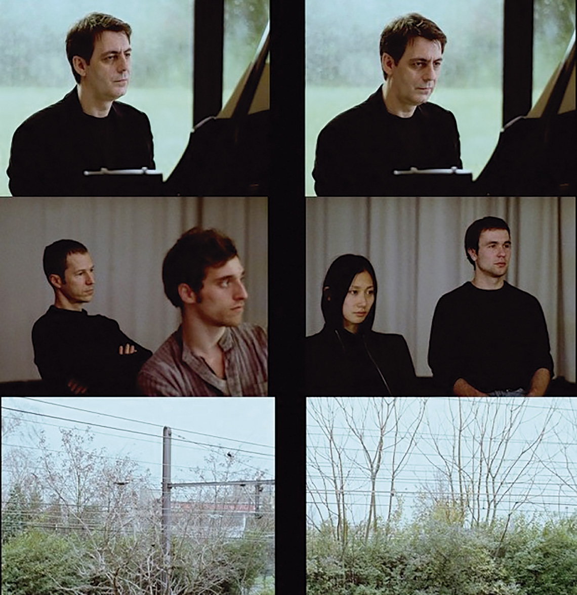 Al pensar en la voz y el silencio resulta imprescindible recordar la pieza Two times 4’33’’ 10, en la que la artista pone en escena dos veces la conocida pieza de John Cage 4’33’’ 11. Recordemos que esta composición es interpretada por cualquier músico con su instrumento manteniendo cuatro minutos y treinta y tres segundos de silencio marcando en el cronómetro los instantes 30”, 1’40” y 2’23”. Dividida en dos partes, esta pieza primero fija la mirada en el cuerpo del músico sentado ante el piano y atento al cronómetro. En la segunda interpretación, apuesta de nuevo por la circularidad para registrar la performance; esta vez la cámara se sitúa en un espacio central y gira sobre sí para pasar en un travelling del artista a los espectadores sentados en frente del escenario para luego salir al exterior a través de una ventana para contemplar el paisaje ventoso entre ramas y cables ferroviarios. Mientras, en esta segunda parte, todo el sonido, a excepción de los tres momentos en los que el artista marca el cronómetro, desaparece.