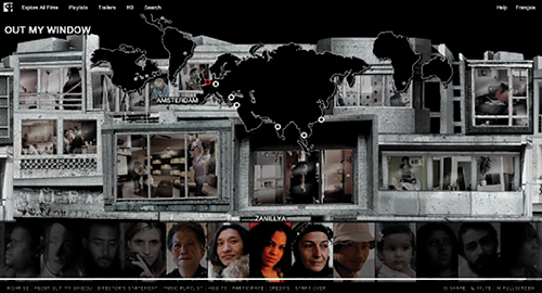 By opening the homepage of Highrise: Out My Window we are confronted with the collage of images of buildings, people and a map, and the way we are going to view the film will depends on our own system of choices – where, whom and what are we going to see and listen.
