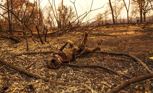 Imagem 1: Primata morto pelo incêndio. Autor: Lalo de Almeida/ Folhapress