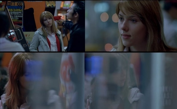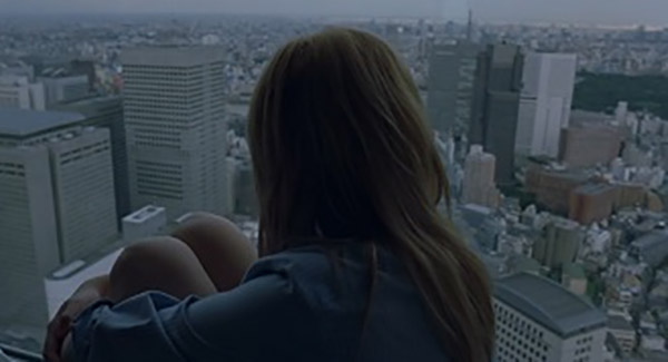 John viaja por alguns dias para outra locação enquanto Charlotte passa seus dias dentro do quarto de hotel (bagunçado), e observando por longos espaços de tempo a cidade pelas imensas janelas de vidro. O enquadramento das cenas em que ela observa a cidade através da imensa janela (transparente) nos confunde... ela está dentro e fora simultaneamente (aparentemente). Os limites são confusos pela repetição de transparências, essas que não encontram delimitações aparentes, apontam um vazio pelo qual nada parece acontecer/preencher.