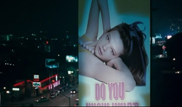A frase/palavra que não pergunta nem afirma (e assusta) “do you” (Você. Você... Você! Você? – ele não sabe) ilustrada no outdoor, no enquadramento da imagem, pela visão (ensimesmada) de Johnny, essa figura parece falar diretamente com ele/para ele. Podemos pensar que assim se define parte do estado de deslugar (quer/não quer/ é não é) do ator.