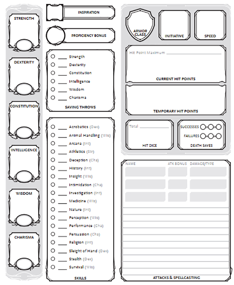 Figura 2. Fragmento de una hoja de creación de personaje. Fuente: DnD 5e Players Handbook.