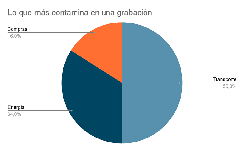 Si bien todo proceso de producción genera huella de carbono, donde se encuentran los picos más altos de contaminación es el rodaje o grabación. Desde la pre-producción se pueden tomar en cuenta decisiones sustentables para que el impacto sea menor.