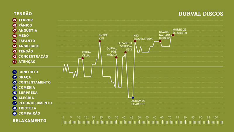Figura 4 – Exemplo de utilização da ferramenta do gráfico das emoções em seu primeiro filme, Durval Discos (2002). Fonte: Navega 2019.