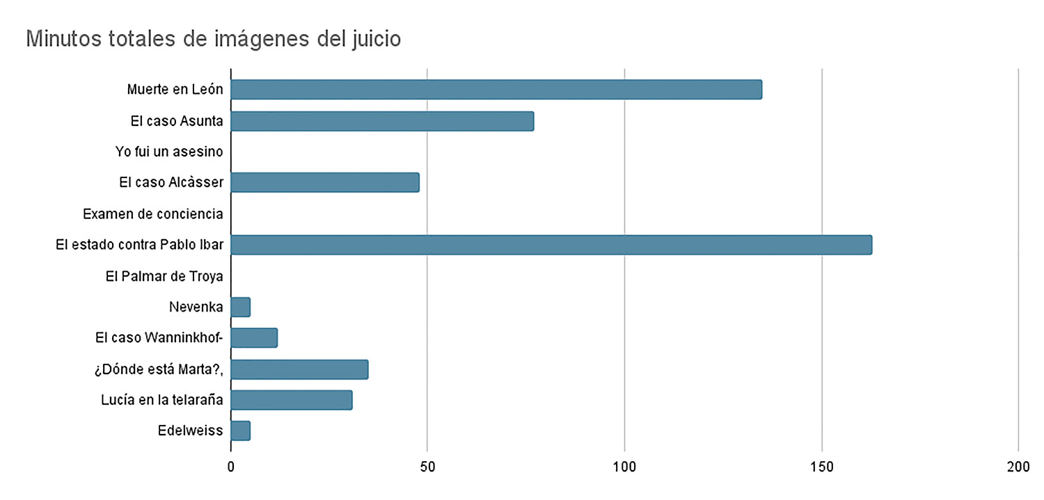 Figura 3 - Metraje total de imágenes del juicio en cada true crime. Fuente: elaboración propia.