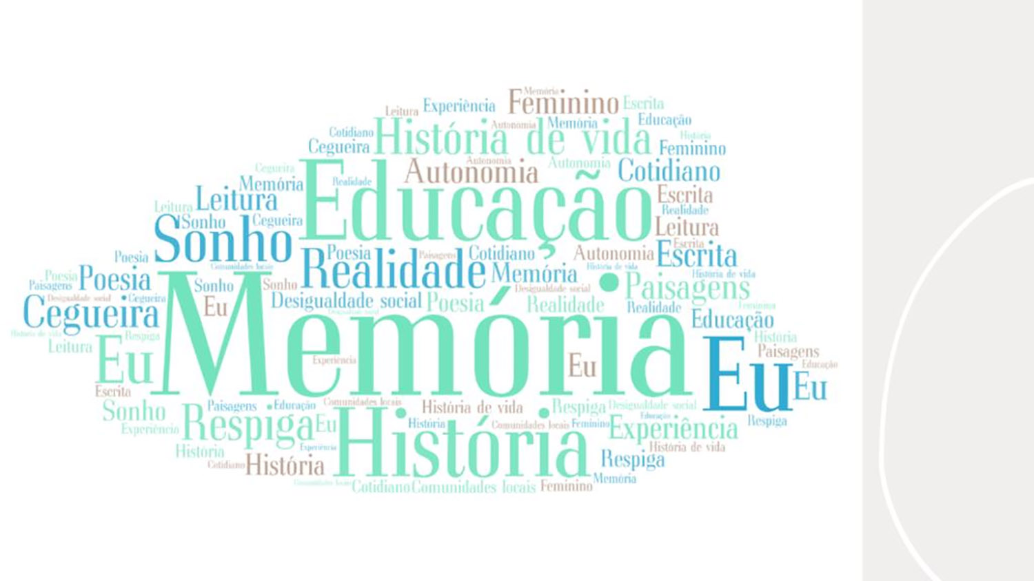 Identificamos, nos diários, interesses específicos que começavam a emergir no grupo. Para aprofundarmos os diálogos, estimulamos reflexões a partir dos seguintes aspectos: 1) Experiências pessoais que estavam a delinear as ações dos participantes na esfera coletiva, naquele momento, em suas vidas: foram mencionadas experiências com a formação em cinema, com os processos de escuta ativa na relação professor-estudante no exercício da docência, experiências pessoais que envolvem a área da saúde mental e o envelhecimento, experiências com a leitura e escrita no campo da literatura - especialmente a poesia, a busca por autoconhecimento com o objetivo de desenvolver o exercício profissional, experiências de investigação das histórias de família, das autobiografias de imigrantes e a importância da primeira pessoa como forma legítima de produção de conhecimento; 2) Mapeamento de temas de interesse individual para a criação de um produto audiovisual coletivo: este exercício gerou uma nuvem de palavras conforme mostra a Figura 3. As palavras que mais se repetiram foram, depois, utilizadas como elementos estruturantes das atividades realizadas na oficina prática, no mês de fevereiro (Figura 4); 3) Descrição dos grupos com quem os participantes do curso gostariam de trabalhar em pesquisas futuras, a partir da experiência da produção de um filme coletivo permeado de narrativas autobiográficas: a partir da pergunta sobre quem seriam as pessoas com quem cada estudante gostaria de trabalhar após o curso, encontramos respostas que apontam para um público potencial composto por pessoas mais velhas, mulheres, adolescentes em contextos escolares, imigrantes, membros da família dos participantes, alunos, artistas (atores e atrizes), membros de comunidades locais, e pessoas com deficiências visuais. Assim, pudemos rastrear algumas características dos grupos que possivelmente serão beneficiados pelo efeito multiplicador da formação que nos propusemos oferecer nesta oficina.