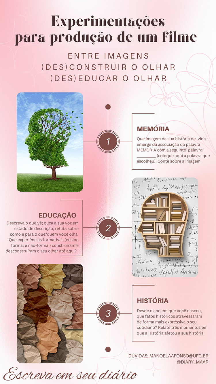 Finalmente, lançamos as seguintes questões ao grupo, para que se preparassem para as atividades práticas realizadas em fevereiro: Como as imagens se movem no seu imaginário autobiográfico? Qual é a potência transformadora dessas imagens e o que elas movem na sua vida e na sua pesquisa? A partir disso, nos três dias de oficina (Figuras 5, 6 e 7), estimulamos a produção de material autobiográfico bruto – imagens, textos e áudios – que pudessem compor o filme final. As atividades foram orientadas pelas três palavras que mais se destacaram na nuvem (Figura 3): MEMÓRIA, EDUCAÇÃO e HISTÓRIA. Em conjunto, elas deram contornos ao esquema ativador criado para estimular a emergência de narrativas de vida ao longo da oficina (Figura 4). Tal esquema transformou-se em dispositivo artístico-pedagógico criado a partir das interações estabelecidas de forma criativa e experimental com os participantes do curso. Através dele, foi possível estimular histórias de vida que, ao buscarem conexões com contextos específicos ligados à memória, à educação e à história, criaram pontes entre vida íntima e vida pública, num exercício que demonstrou a relevância da dimensão autobiográfica do fazer para o aprimoramento do senso crítico e político sobre a nossa atuação e participação na vida em sociedade.
