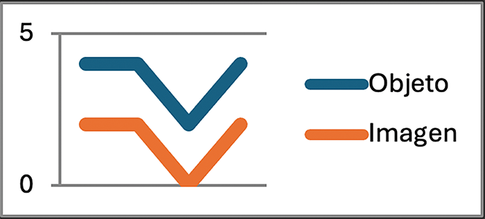 En este sentido, el objeto y su imagen tendrían una relación parecida a la que tienen las líneas asíntotas. Es una primera posibilidad de lectura que propongo, que habría que contrastar con la del objeto y la imagen como líneas tangentes. Una línea es asíntota cuando existe una línea recta, vertical u horizontal, que se aproxima tanto de la otra, que su separación tiende a 0, pero que siempre sigue estando separada de la otra. Hay un lugar en la gráfica donde la línea es curva y está más separada de ambos ejes. La imagen puede llegar a tener un lugar donde su vida pueda mantenerse lejos del objeto, pero siempre volverá a aproximarse a éste, aunque no se toquen.