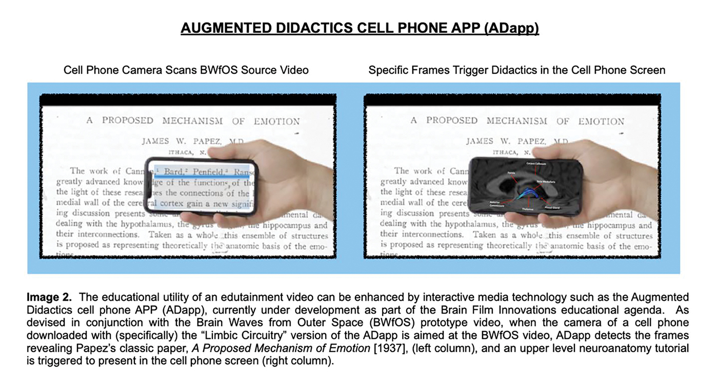 In order to address this issue, in 2023 the HEMVFED project (Ottowitz 2021) was revisited through the portal of interactive educational technology, which resulted in development of the Augmented Didactics cell phone APP (ADapp, Ottowitz et al., 2023; Ottowitz 2024). The ADapp is designed to place an introductory edutainment video more at the center of a learning effort. That is, upon viewing an edutainment video combined with use of the ADapp, the introductory didactic content of the edutainment video can acquire greater context, explanation, and additional factual details and thus resonates with the spiral curriculum framework advanced by Jerome Bruner (Masters and Gibbs 2007). The ADapp intends to harness the engagement inspired by the edutainment video and carry that momentum through to more fully motivated learning sessions where the learning is further augmented by supplemental tutorials, i.e. the learning process has generally been shown to benefit from technology based interactivity (Alam and Mohanty 2023; Aulia et al., 2024).