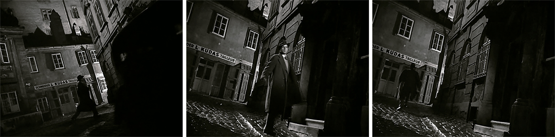 Pero esos trabajos sólo nos muestran los lugares como nodos de un recorrido que el filme va trazando en silencio a través de sus personajes centrales, Holly Martins, Anna Schmidt y Harry Lime.