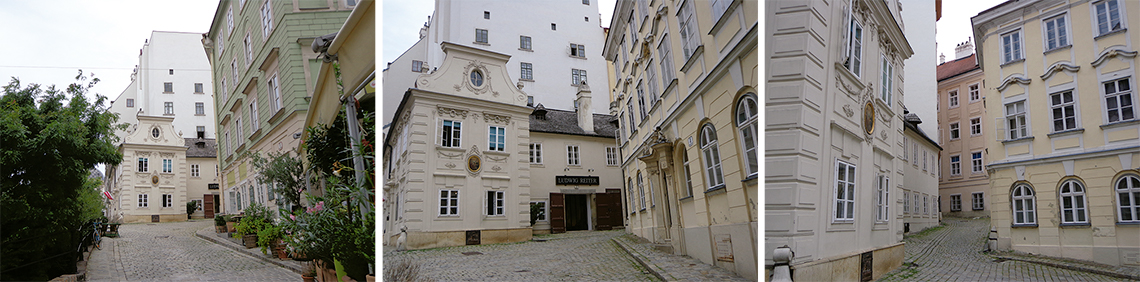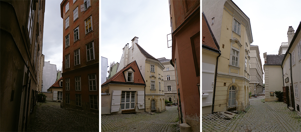 Durante mi visita a Viena, relevé la Josefsplatz y, pretendiendo recomponer el camino de llegada y de huida de Anna Schmidt y Holly Martins, continué fotografiando la calle Reitschulgasse, enfocando y adentrándome en la Agustinerstrasse [véanse Fotos 7, 8, 9 y 10].