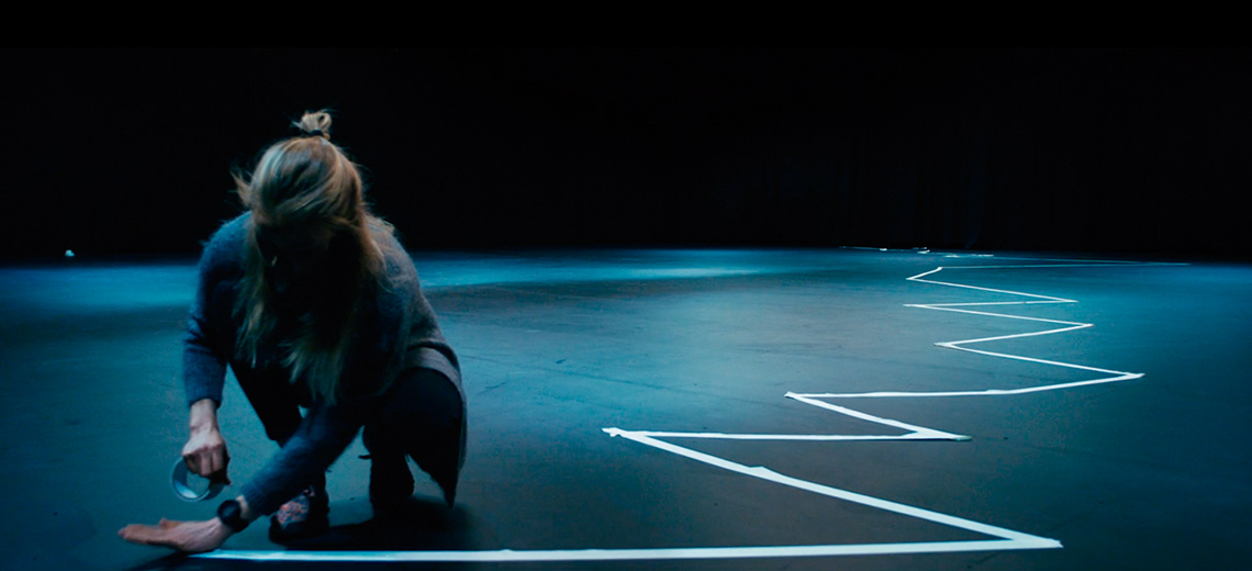 In the next sequence we go straight to the preparation of the stage where the reconstruction is going to play out. Rakel is mapping out the terrain with white scotch. There is no typical exposition part with sit down interviews and flashback from her own upbringing. This emphasis the perception of here and now and thus also the authenticity feeling that Poppe used in his film; the function of time and space.