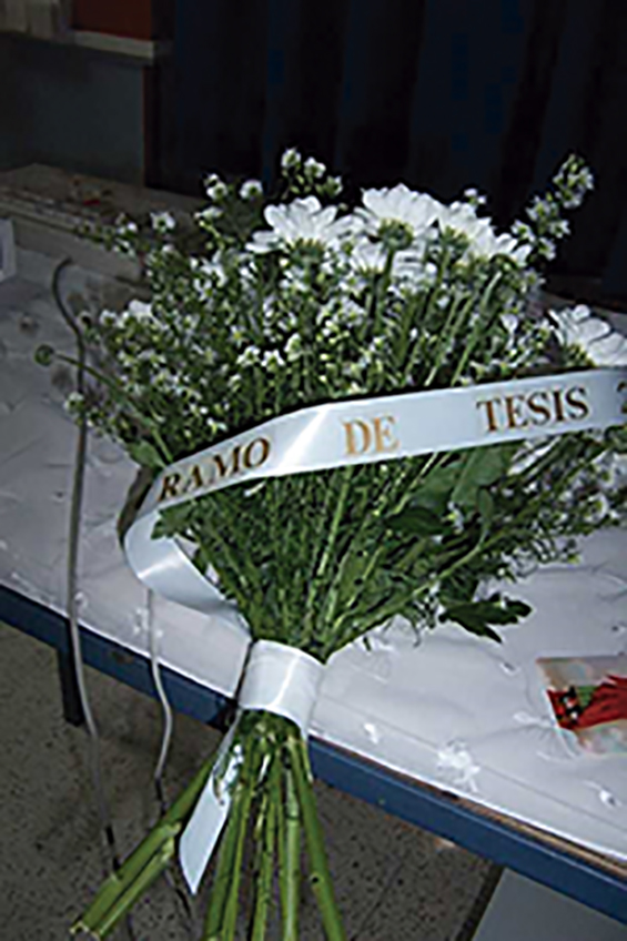 A série “Bailes Académicos” teve como precedente o trabalho artístico de Pilar desenvolvido até então: Em 2002, na defesa da tese do seu doutoramento, em que a Pilar recriou o acontecimento académico, na performance “Auto Boda” (veja-se Fi. 1 a 3), transformando aquela mudança de status (de doutorando ou candidato em doutor), num peculiar casamento de união simbólica consigo mesma. Já nessa ocasião usou os elementos de qualquer ato ritual (vestidos, iconografias ...) invertendo-os de forma a dar-lhes um significado diferente: “meu vestido de noiva branco, minhas “damas de honor, de tese” em branco”. O “ramo de tese” que lançou quando já era doutora. O “bolo da tese” (“Tese quase mil folhas”). O formato da tese, livro encadernado em branco, com letras douradas e uma fotografia embutida como um pequeno missal, em grande formato. Ou a maneira litúrgica pela qual mudou a introdução formal do ato de defesa. Definindo os seus orientadores de tese como “padrinhos” e os membros do tribunal como “padres”. No final deste processo, Pilar fez uma viagem de “núpcias” e foi a Cabo Verde passar quinze dias para viver uma experiência de viagem, criatividade e investigação, mas em plena liberdade, sem a necessidade de recolher material para uma tese. Esta performance foi a influência mais marcante para a série “Bailes Académicos’’, pois já indicava uma orientação para a futura investigação.
