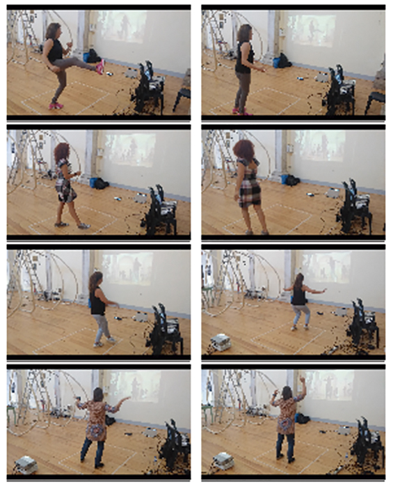 Figura 7 – Imagens de visitantes nos momentos 4 e 5 do artefacto Clash (and dance) Yourself no Retiro DMAD 2018