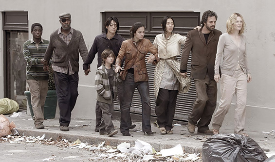 Imagem 04: Cena da travessia em que as pessoas acometidas pela cegueira branca cruzam a cidade, guiados pela protagonista do filme.