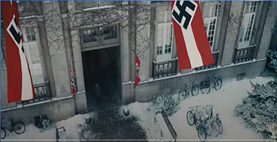 O nazismo, aqui situado como o fenômeno anômalo, é o pano de fundo do enredo como um todo. A onipresença do Führer Hitler é percebida em várias cenas. Para alcançar essa onipresença, alguns recursos como a câmera plongé foram utilizados em momentos específicos, que a nosso ver, deixam explícito o poder dominador do Führer, equiparando-se a uma divindade. Como exemplo, podemos citar algumas cenas que exibem a escola filmada de cima evidenciando as bandeiras com a suástica em primeiro plano, o que permite a sensação de inferioridade da instituição perante o governo nazista. Vale ressaltar que o símbolo da suástica está presente em muitos outros momentos do enredo causando a sensação da onipresença antes descrita.