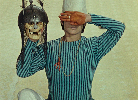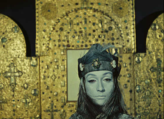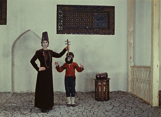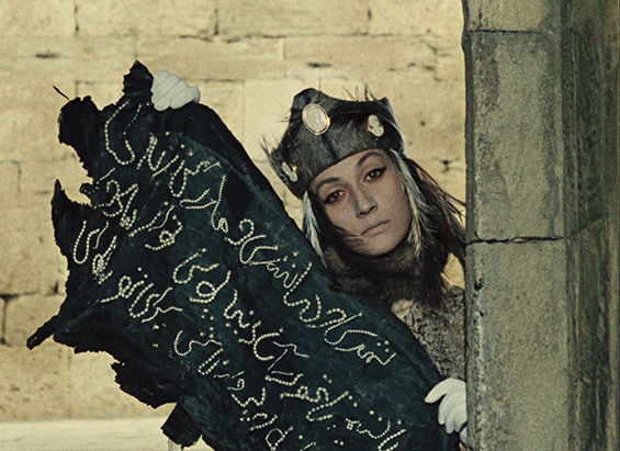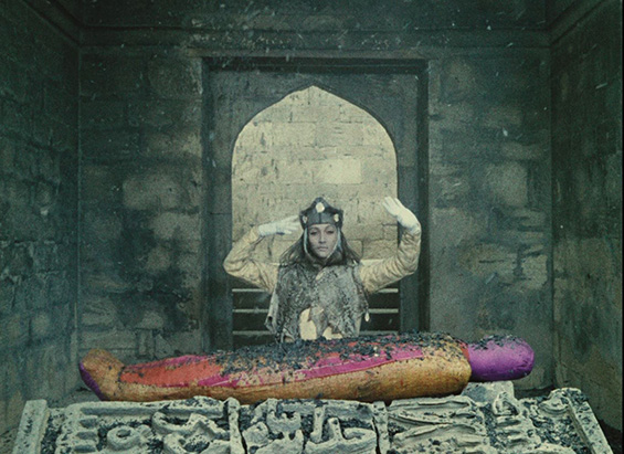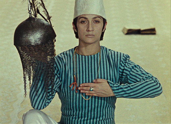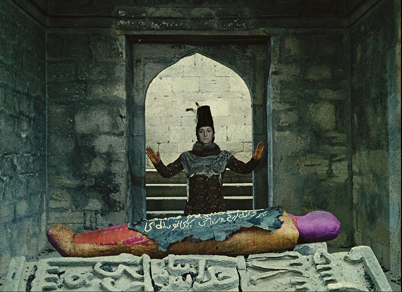 The Colour of Pomegranates (1969) is in no sense a literal biography, nor a historical film. It is rather a poetic film, created with the help of the nature and cultural elements of architecture, handicrafts, rituals, and poetry of the time. Sayat-Nova lived during the beginning of the 18th century, in times of cruelty, invasions, and yet his poetry and his songs stood still against the violence as he described and celebrated humanity, beauty and life. The same way, the film depicts the ashugh’s pictorial world: we witness mystifying rituals and strange beliefs and experience the harmonious relationship between people and nature, feelings and thoughts, colours and forms, silence and sounds. Parajanov’s interest in everyday customs, games and songs is not merely ethnographic: through folklore he wishes to communicate the moral and aesthetic atmosphere of people’s lives. The film produces a sense of the new out of a rearrangement of old and explores the inner world of Sayat-Nova through symbols drawn from the medieval Armenian culture and Apostolic Christianity. In his interview to the Soviet Screen (Советский экран) 1969, p. 184)) he mentions: “We are recounting the epoch, the people, their passions and thoughts through the conventional, but unusually precise language of things. Handicrafts, clothing, rugs, ornaments, fabrics, the furniture in their living quarters – these are the elements. From these the material look of the epoch arises.”