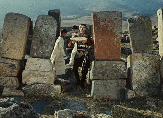 Soviet Armenian filmmaker Sergei Parajanov uses cultural elements in abundance and produces pictorial works which function as a bridge between history, art and aesthetics. As a bearer of a Soviet culture, he presents the Ukrainian Hutsul society in Shadows of Forgotten Ancestors (1965) and the Armenian culture in The Colour of Pomegranates (1969). Parajanov uses elements of cultural heritage, like landscape and building, as well as costumes, distinctive behavioral patterns and narrative devices derived from history to recreate the identity of Ukraine and Armenia on screen. The iconography of the shots, their use of certain conventional correlations in artistic representation constituted a code, which was culturally specific to the artist’s society, and strange for the other cultures. So, the audience can recognize the cultural elements, though they will not connect with the films as natives do because they did not inherit the same codes.