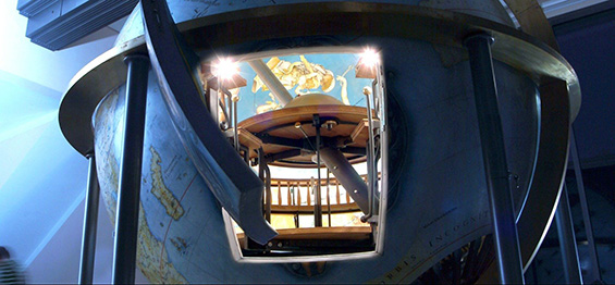 Buscando contornar, de alguma forma, esta limitação, pelo menos desde o século XVII podemos identificar iniciativas de concepção e construção de modelos em ambientes fechados aos quais se poderia adentrar e experienciar uma vista interna do universo, conforme a experiência de um observador terrestre. O Globo de Gottorp, construído no ducado de Schlechwig-Holstein por volta de 1650, é recorrentemente identificado como um dos mais célebres antecedentes históricos diretos do planetário moderno (Goesl 2011; Marche 2005; Wiethoff 2008; Beyer 2019). Segundo King (1978, p.104), este aparato consistia em uma esfera oca de 3 metros de diâmetro e foi o primeiro globo celeste apto a receber visitantes sentados em seu interior. Enquanto no lado externo do globo havia a representação do mapa terrestre, na superfície interna o visitante encontraria estrelas e figuras mitológicas associadas às constelações zodiacais.