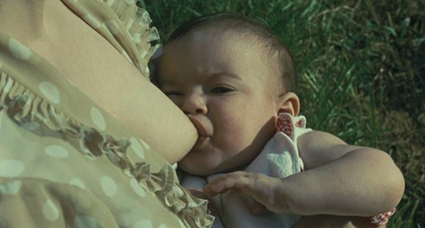 Nos primeiros minutos, presenciamos o nascimento de Édipo e a relação com sua mãe, Jocasta. Temos imagens de campos verdes, filmados em planos gerais e abertos, onde Jocasta amamenta seu bebê. A câmera, trêmula, percorre as árvores e o céu.
