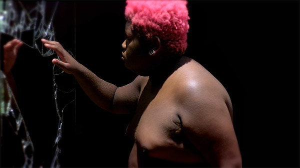 O filme inicia-se com uma performance que destaca o corpo de Eric: um corpo negro, seminu, sozinho em um fundo preto. Corta para um espelho partido, o encontro da personagem com o espelho causa estranhamento, ao não se perceber na imagem refletida (Figura 1).