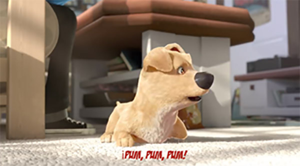 La última fuente de letra que hemos escogido es la que designa a los ladridos del cachorro. Por el mismo motivo que el caso anterior, la tipografía Comix Loud, por su parte, muestra una gran similitud a la que puede aparecer en un cómic y creemos que es una forma más rápida, sencilla e, incluso, dinámica de identificar cuando interviene el perro, en lugar de indicarlo con la didascalia [LADRIDO], como ocurriría en SpS: