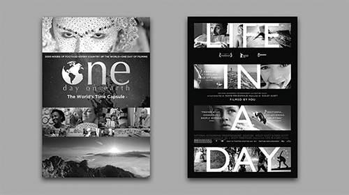 Figura 11 - Cartazes dos filmes One Day on Earth (2012) de Kyle Ruddick e Life in a Day (2010) de Ridley Scott e Kevin Macdonald.