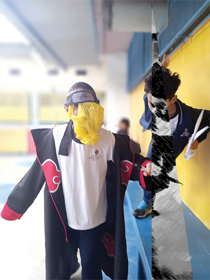 Agora, eles teriam que montar fotografias como cosplays de personagens encontrados na animação Naruto, evocando poses, roupas e ornamentos como ferramentas de lutas (Kunais e Shurikens). Foi salientado a eles que o mais importante não era o corpo ser transformado na pessoa mais parecida com o personagem escolhido, no entanto, era construir uma imagem que tivesse sua essência e, principalmente que mantivesse sua singularidade pessoal, identitária, étnica e, além do mais, sem subalternizações de gênero. Como um dos grandes exemplos mostrado em sala, foi escolhido o cosplay de uma garota negra5 representando um homem do grupo Akatsuki que aparece em Naruto Shippuden.